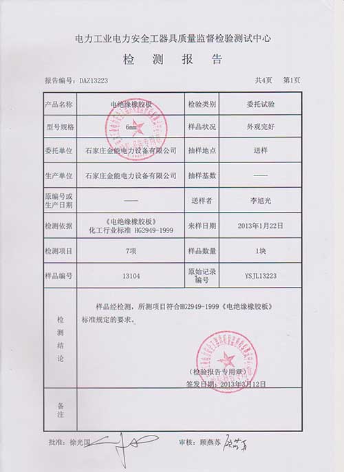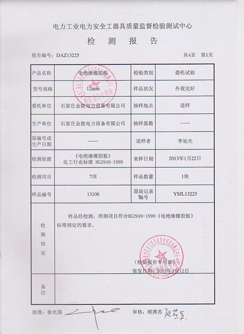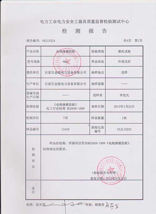 本公司絕緣橡膠墊、橡膠毯專業生產直銷批發,可提供國家權威的檢測報告: