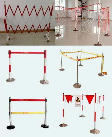 絕緣安全圍欄系指柵狀遮攔、網(wǎng)狀遮攔和板狀遮攔。柵狀圍欄的高度不應(yīng)小于1.2m,最低欄桿至地面的凈距不應(yīng)大于200mm,一般用圓鋼、鋼管、硬質(zhì)木材制作;網(wǎng)狀遮攔的高度不應(yīng)小于 1.7m,網(wǎng)孔不應(yīng)大于 40mm ×40mm;板狀圍欄的高度不宜低于1.9m,鐵質(zhì)隔板的厚度不小于2mm,寬度以500-600mm為宜。應(yīng)用于基建、試驗、檢修中的臨時圍欄,可用紅、白三角旗相隔并在設(shè)備上、專用支架上掛牢的繩子連接起來,紅白旗應(yīng)醒目,懸掛標示牌應(yīng)方便。