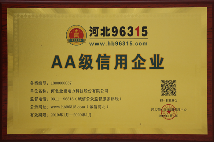 所以,此次金能電力獲得河北省96315信用管理中心頒發(fā)的“信用等級證”,可謂實至名歸!