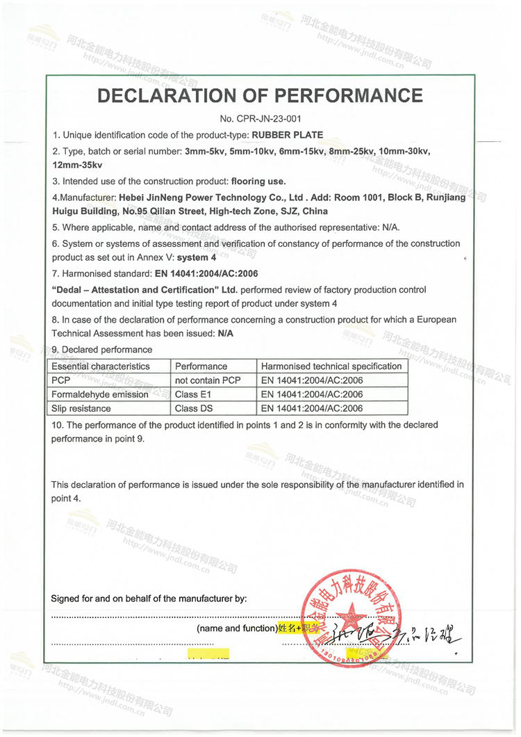 金能絕緣膠墊完成歐盟CE認(rèn)證,通過歐標(biāo)E1級(jí)環(huán)保標(biāo)準(zhǔn)